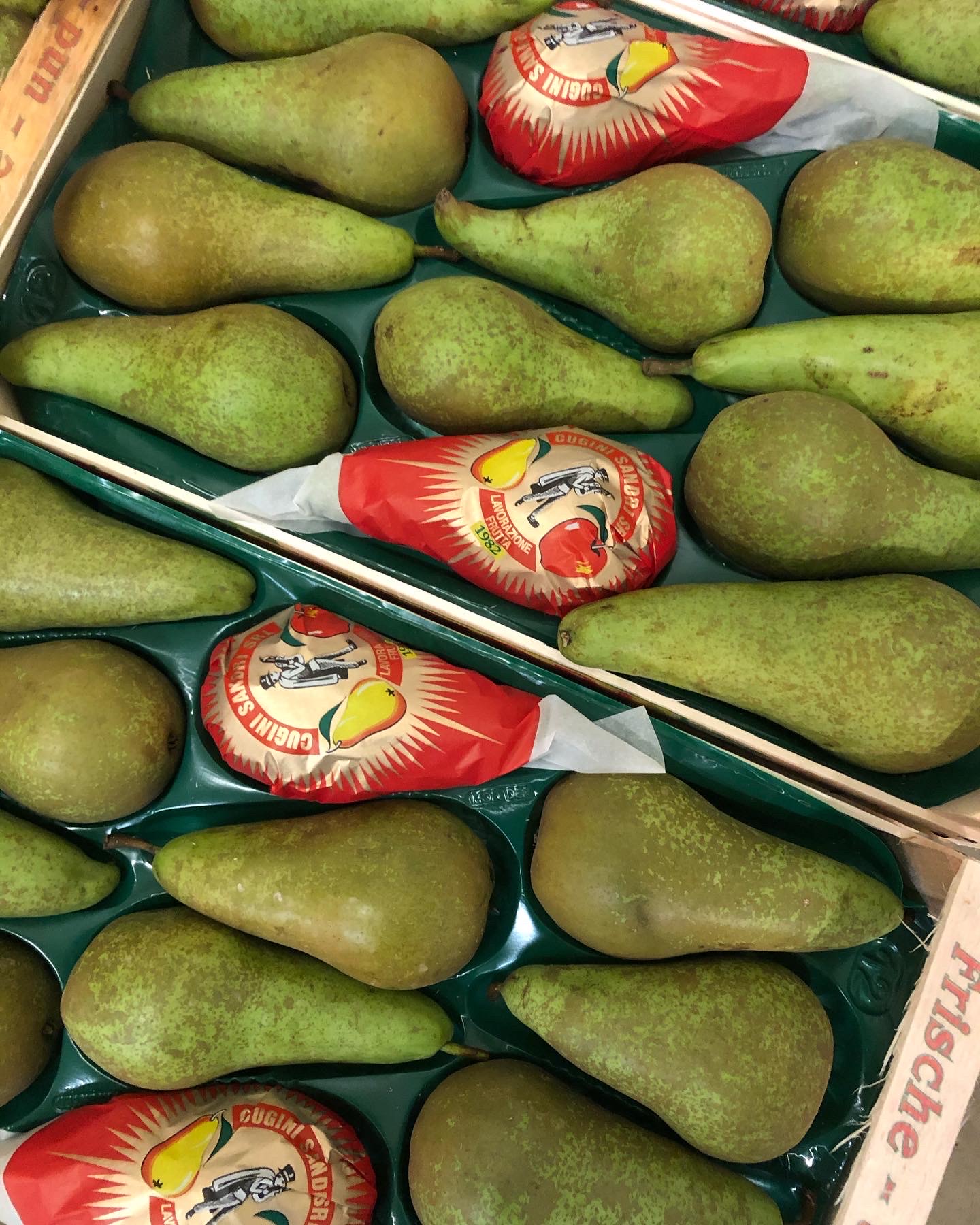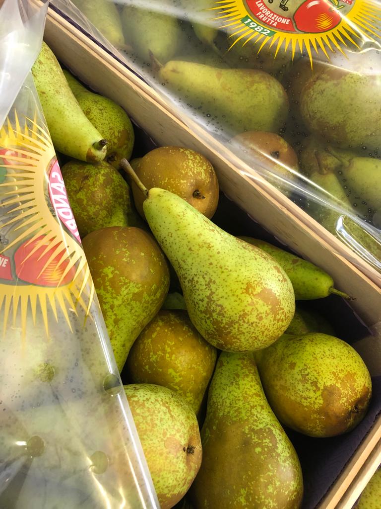 Di origine inglese della fine dell’800, questa varietà è prodotta anche nel Nord Europa, ma quella Emiliana si differenzia per l’aspetto rugginoso ed un sapore più intenso, profumato e succoso con una polpa bianca avorio.Forma conica e allungata e dal peduncolo lunghissimo.Questa varietà predilige l’autunno quando si comincia la raccolta, assumendo una colorazione verde – giallo bronzata, rossa all’insolazione al tatto ruvida.
